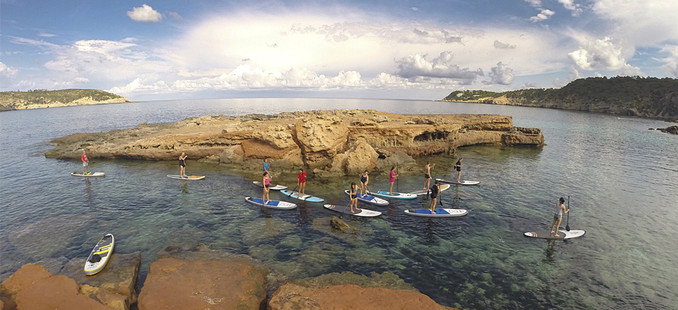 Pratiquer Stand-Up Paddle à Ibiza, vous vivrez une expérience inoubliable avec la meilleure et la plus grande école de paddle surf de l'île.