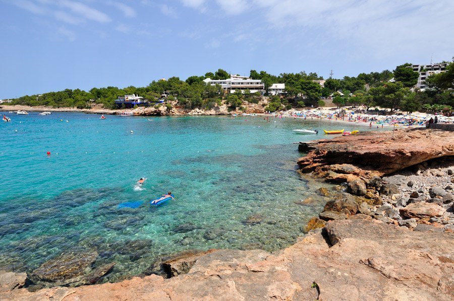 - Cala de Portinatx : petite plage du Nord d’Ibiza avec un sable fin et une eau claire peu profonde à reflets turquoises, tout cela entouré de végétation naturelle.
