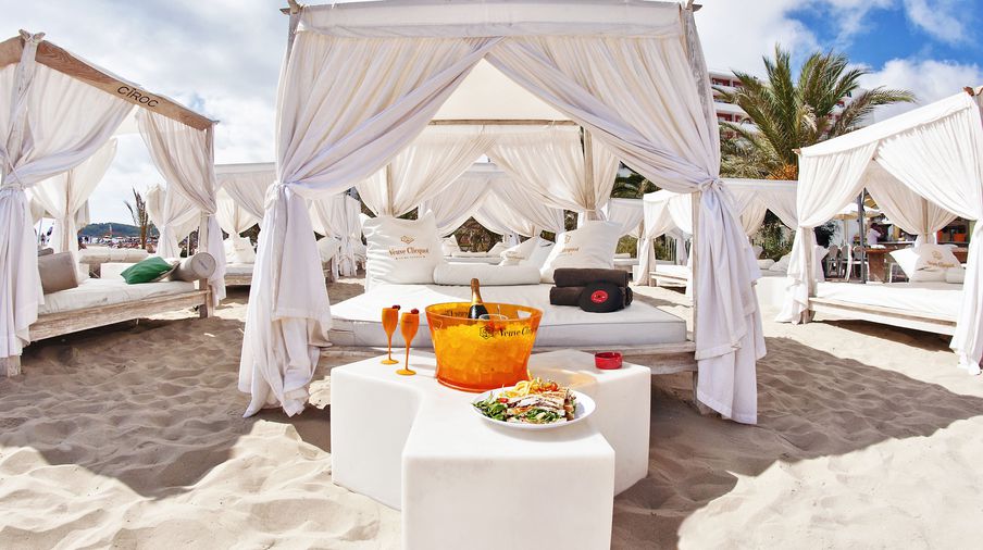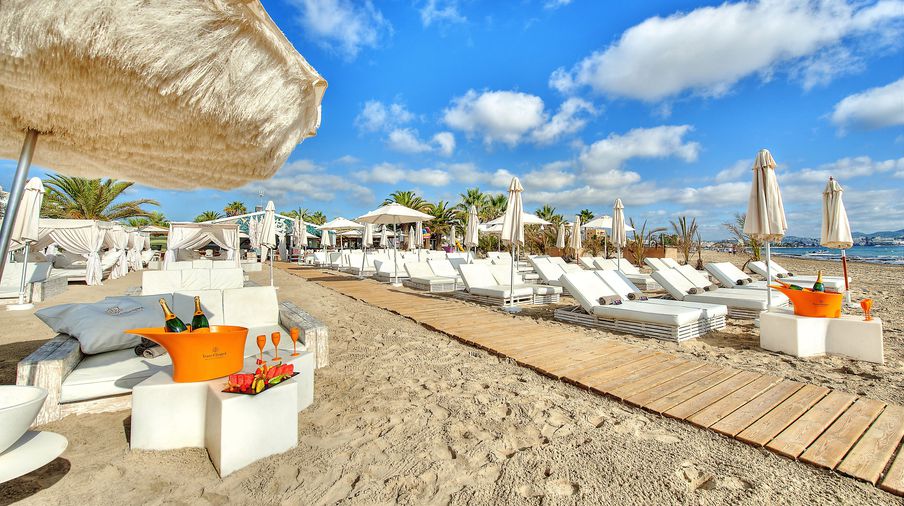 Le beach club est situé sur la Playa d’en Bossa, réputée pour être la plus grande et la plus festive d’Ibiza.