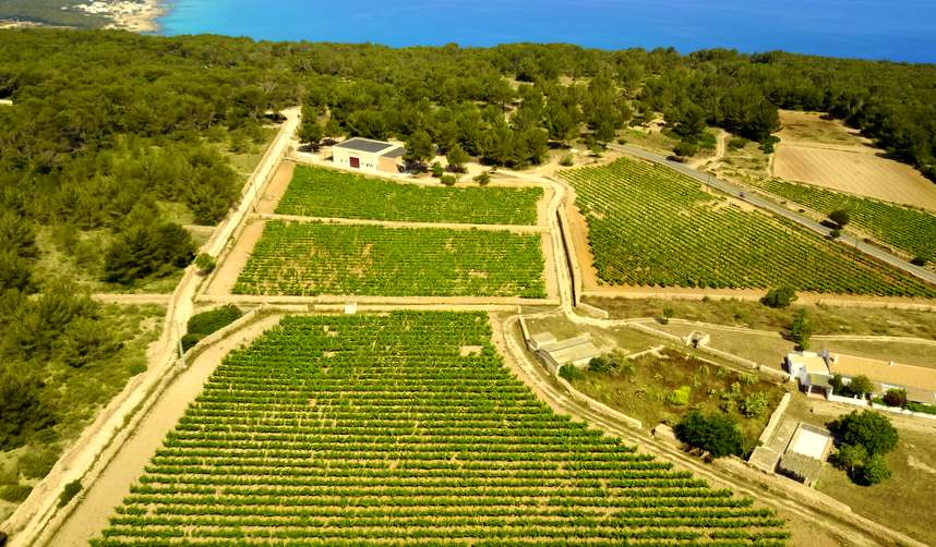 La bodéga est située dans un environnement privilégié, sur le haut plateau de La Mola de Formentera, entourée de pins et de falaises. Sur la colline se dresse aussi, majestueusement, le phare de La Mola. Enfin, les installations, modernes mais dans le style architectural de l’île, participent aussi à la construction d’un cadre d’exception.