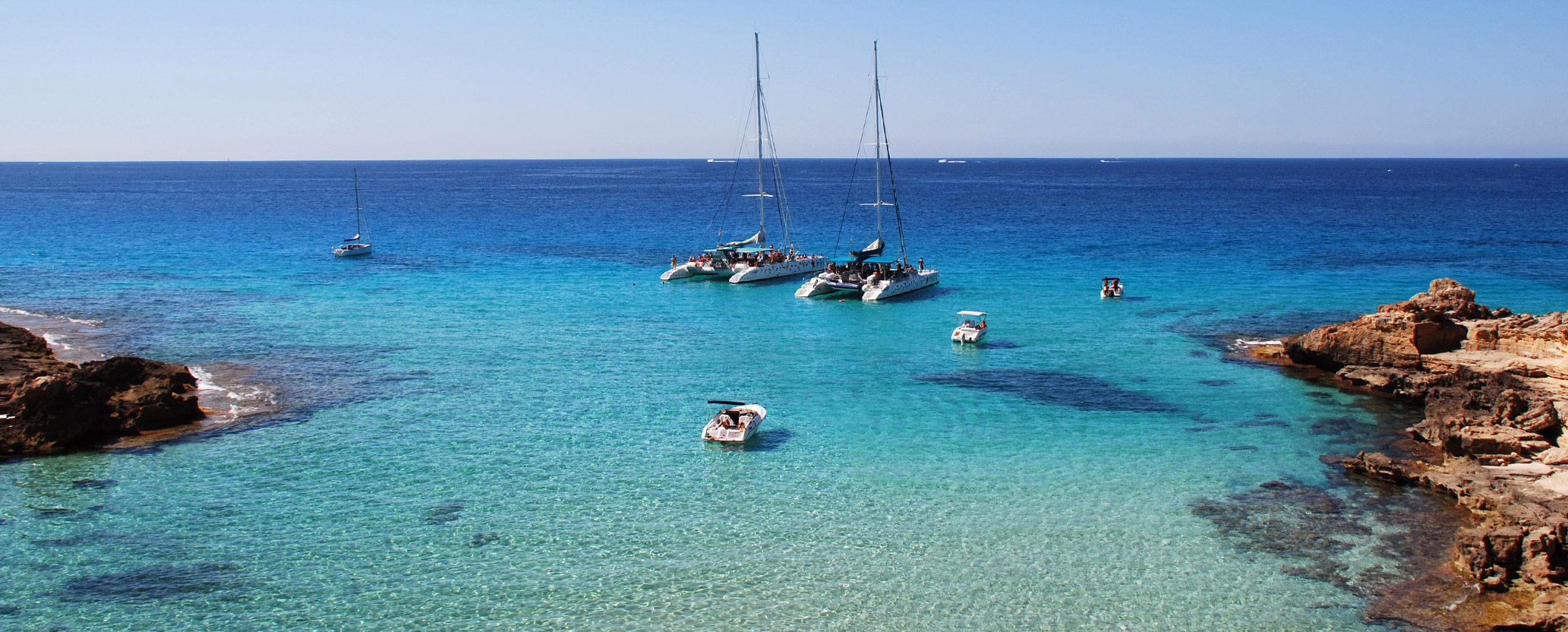 Voguez le long de la spectaculaire côte sud de Majorque en catamaran et jetez l’ancre face au parc naturel de Es trenc.