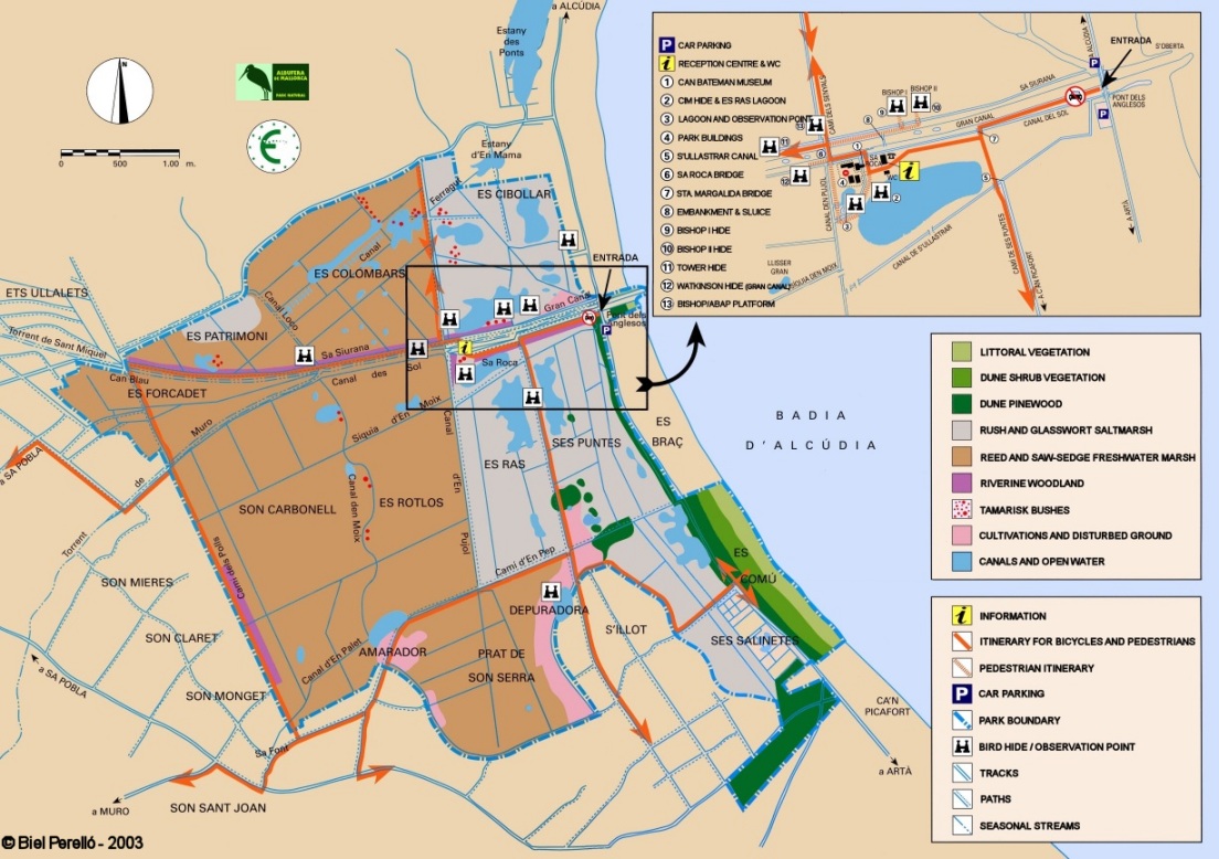 L’entrée au parc est gratuite. Il faut passer par la réception pour s’inscrire comme visiteur. Celle-ci se trouve à 1 Km du parc et vous y disposerez d’information sur ce que vous pourrez voir (faune & flore), ainsi que les normes à respecter pour les visites. Il y a 4 itinéraires balisés, à faire à pieds ou à bicyclette avec des stops sur points d’intérêt. Il y a aussi 4 points de vue d’observation. Ont été vus plus de 200 espèces d’oiseaux. Plus de 10000 oiseaux passent l’hiver à S’Albufera, haut lieu de migration.