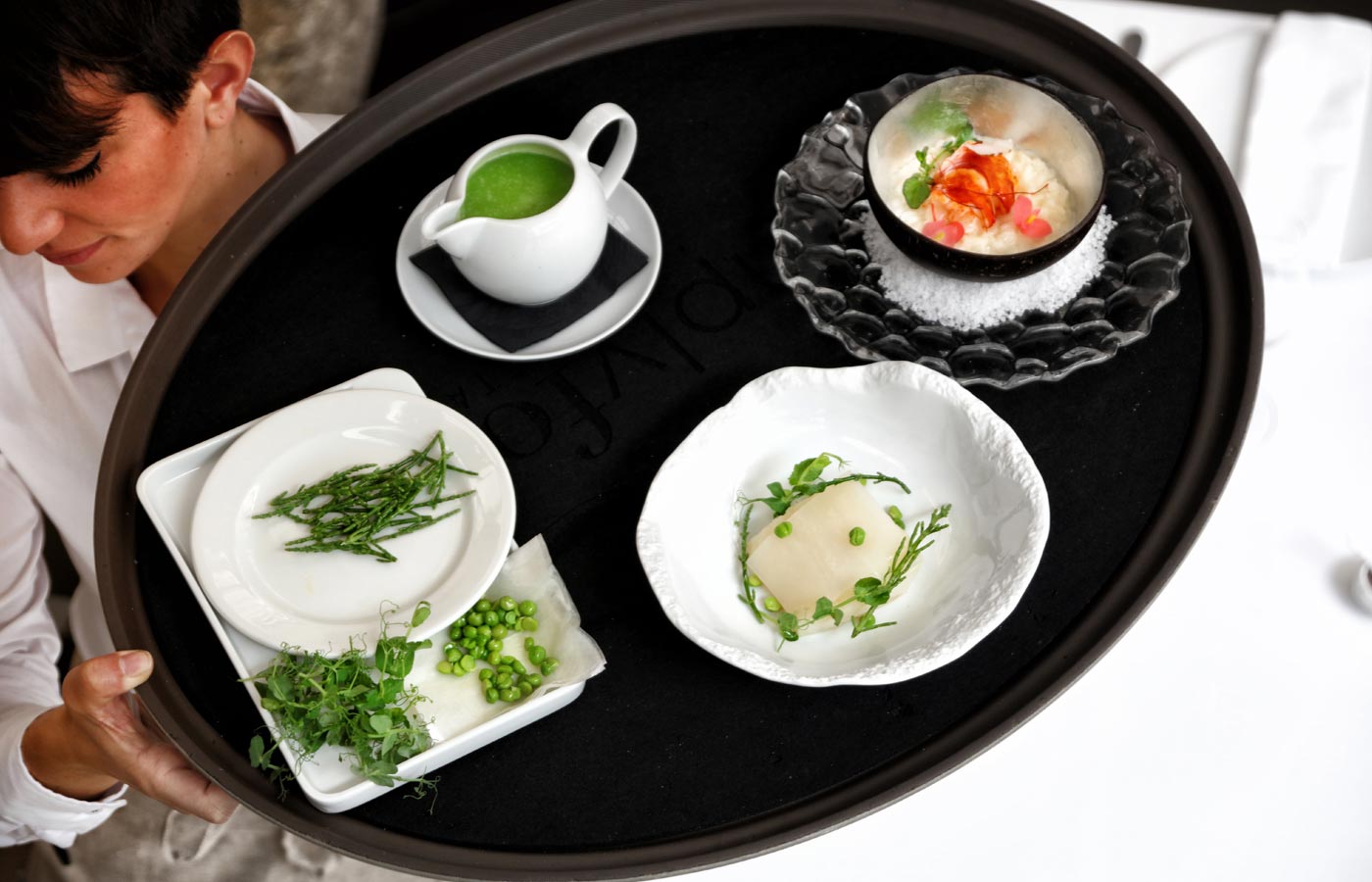 Pour l'heure du déjeuner vous pourrez profiter d'un menu renouvelé chaque semaine, composé de 3 ou 5 plats au choix (respectivement à 29.50€ et 39.50€) qui pourront être accompagnés des suggestions du sommelier en supplément pour le vin. Vous pourrez également savourer le menu dégustation composé de 6 plats et accompagné de snacks et de petits fours pour 79.00€. Quant aux menus du soir, vous pourrez choisir entre le ''menú Marc'' et le ''menú natural'' respectivement à 89.00€ et 72.00€.