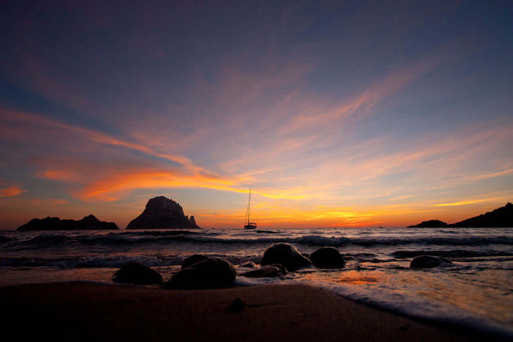 Si vous vous trouvez au nord d’Ibiza, vous devez absolument passer par la plage de Benirràs, l’une des préférées des hippies. C’est aussi l’un des endroits préférés des vacanciers et des locaux pour admirer les couleurs du crépuscule. Et si les couchers de soleil à Benirràs sont si réputés, c’est pour l’emblématique fête des tambours qui accompagne la disparition de l’astre dans la Mer Méditerranée tous les dimanches ; Assurément l’un des spectacles les plus authentiques de l’île !