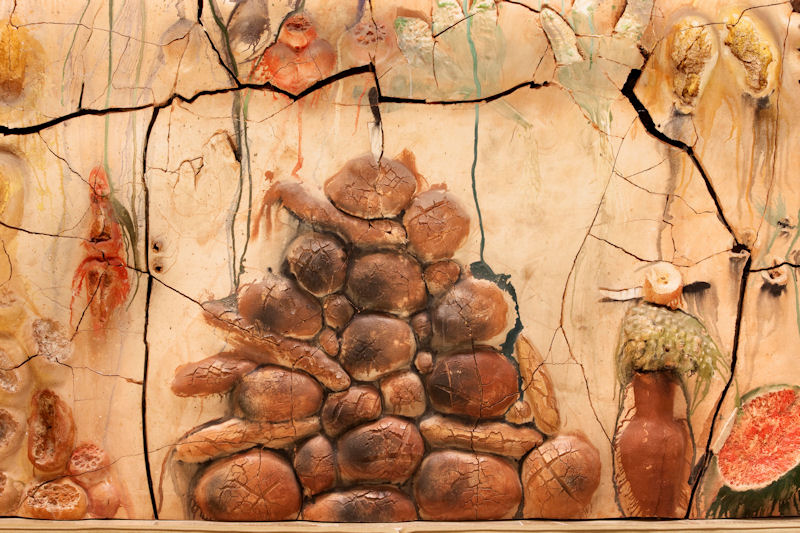 Le résultat sont 3 fresques et 2 « grottes ». La mer, la terre, et l’humanité au centre. La mer représentée à gauche avec la multiplication des poissons, la terre à droite avec la multiplication du pain et la conversion de l’eau en vin, au milieu l’humanité avec le Christ.