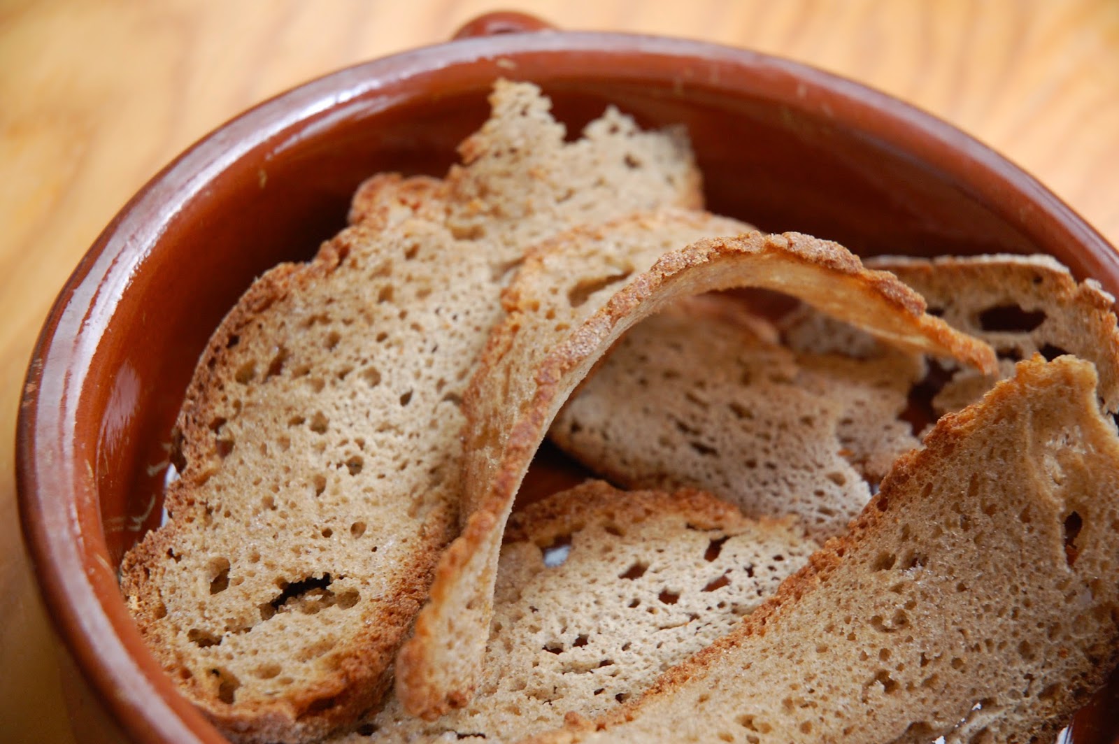 Mais c’est sans aucun doute le pain, coupé en fines tranches, qui est le grand protagoniste de ce plat. Dans les boulangeries majorquines est vendu le pain déjà préparé : pain de campagne, sans sel et tranché.