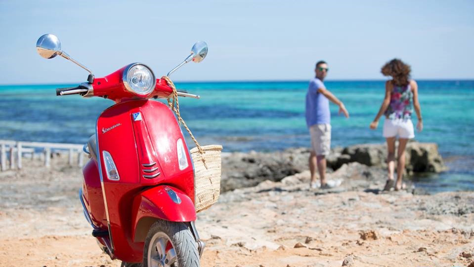 Une flotte de scooters est mise à votre disposition à quelques mètres du port de La Savina, au nord de l’île de Formentera, là où accostera votre ferry depuis Ibiza.