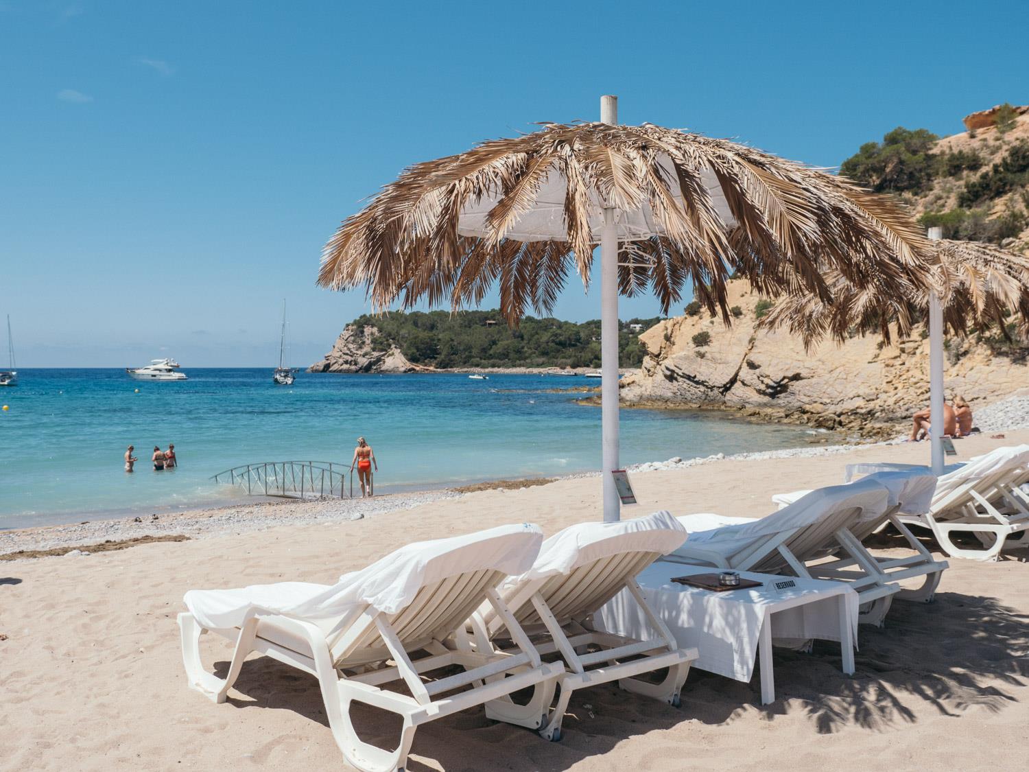 Le Tropicana Beach Club se situe sur la plage Es Jondal à Ibiza, une longue plage d’eau cristalline aux reflets turquoise hypnotisant.