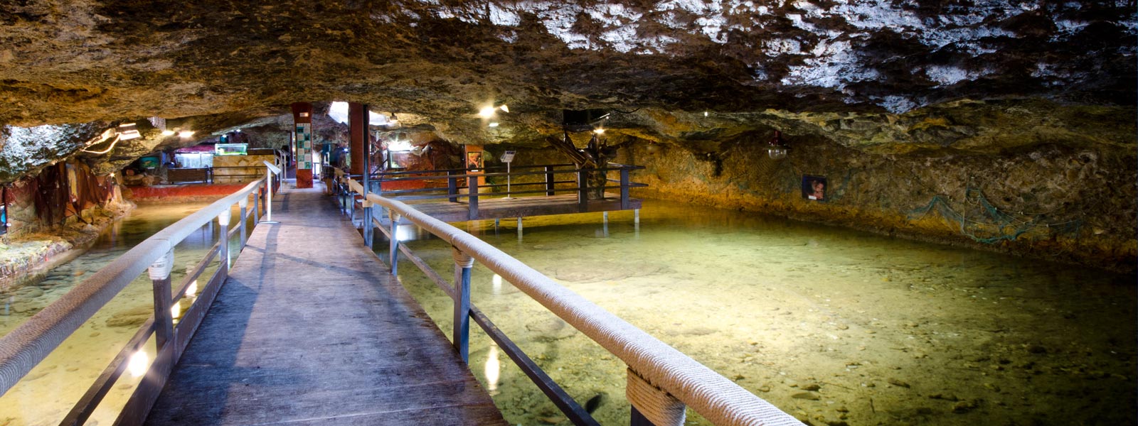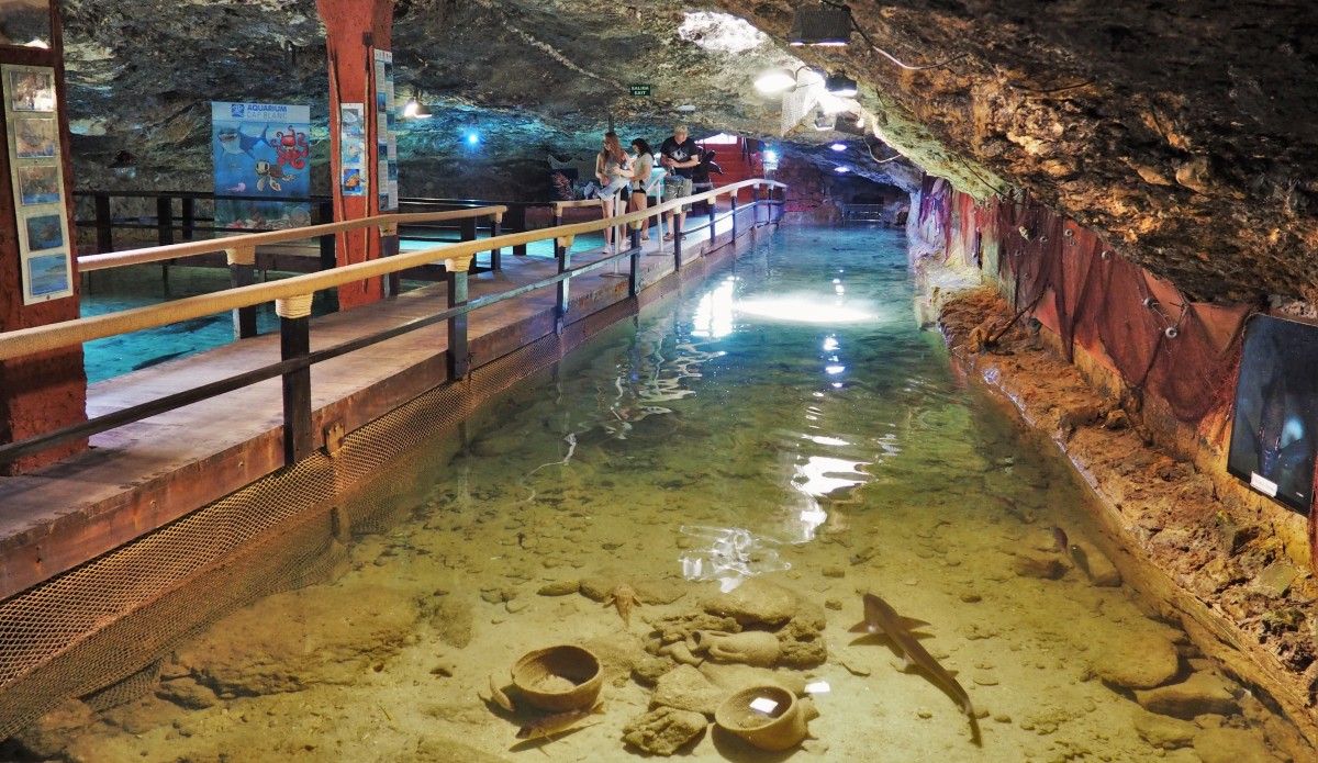 L’aquarium se trouve dans une grotte naturelle et dispose d’un lac d’environ 300m2 divisé en deux parties.
