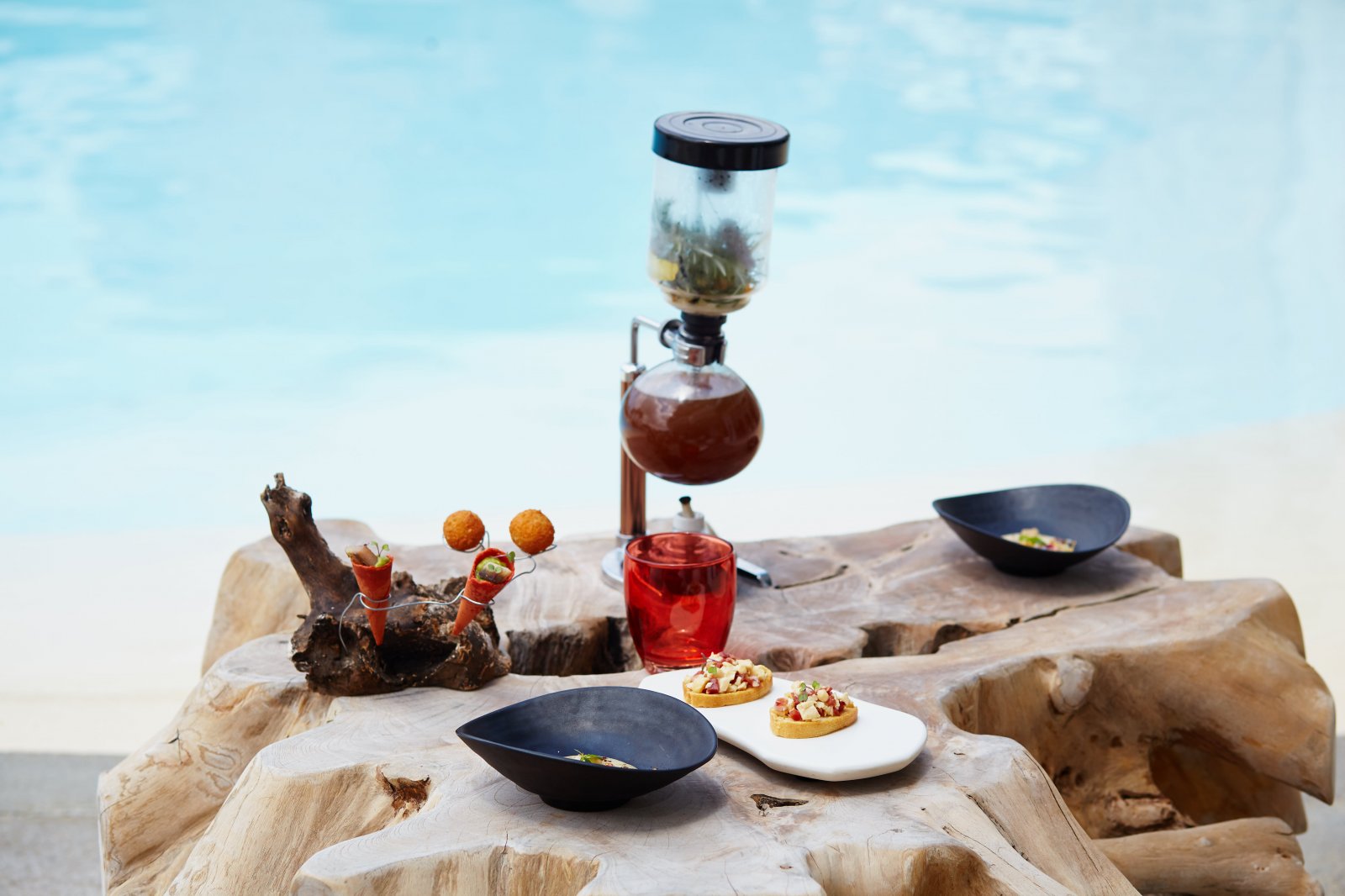 Découvrez des plats fins, rafinés et variés dans un cadre idyllique et unique ! À la carte : 6 entrées, 5 soupes et gaspachios, 6 plats de fruits de mer, 4 plats à base de riz, 4 plats de poisson, 6 plats de viande, et 7 desserts. De quoi régaler tout le monde !