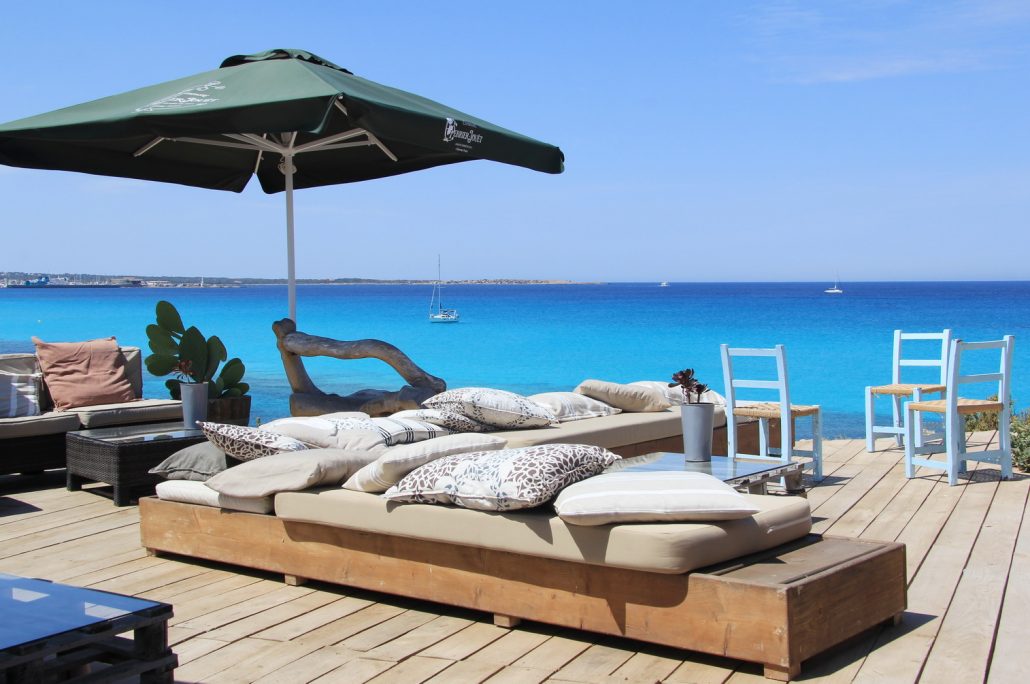 Avec ses vues uniques sur la superbe plage d’Illetes d’un côté, et sur le port de La Savina de l’autre, le restaurant Es Moli de Sal est vraiment un endroit privilégié pour se laisser aller devant la beauté de la mer le jour, et pour profiter des meilleurs couchers de soleil de Formentera le soir. Au loin, vous apercevrez même l’îlot d’Es Vedra pointant à l’horizon…