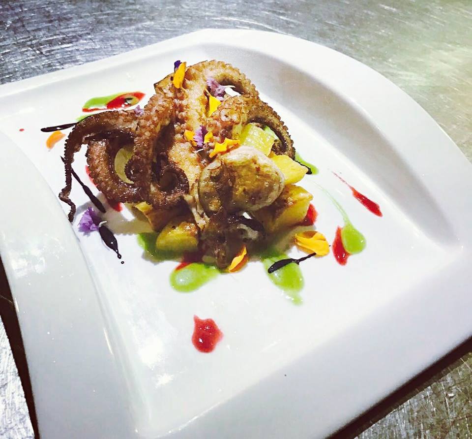En entrée, vous aurez le choix entre plusieurs salades, du jambon ibérique finement coupé, un tartare de loup de mer au gingembre et à la pomme, du poulpe ou encore des crevettes accompagnées de légumes. Cette cuisine majoritairement à base de produits de la mer se retrouve dans les plats principaux qui vous seront proposés, comme les calamars poêlés aux épices ou la dorade. Pour ceux qui n’aiment pas le poisson, plusieurs plats à base de viande sont également proposés par le chef. Terminez sur une note sucrée avec des desserts plus internationaux comme le tiramisu à la pêche ou l’« Eton Mess » à base de fraises, de meringues et de crème légère.