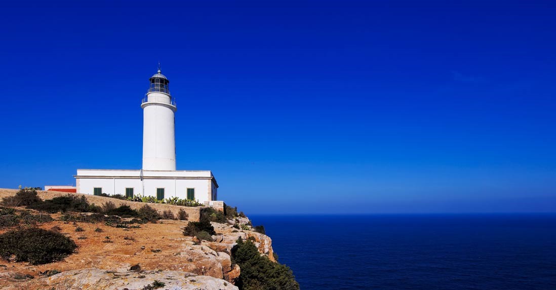 Avec le Cap de Barbaria, le phare de la Mola, perché sur les falaises à 120 mètres au-dessus de la mer, est une des visites typiques de Formentera.