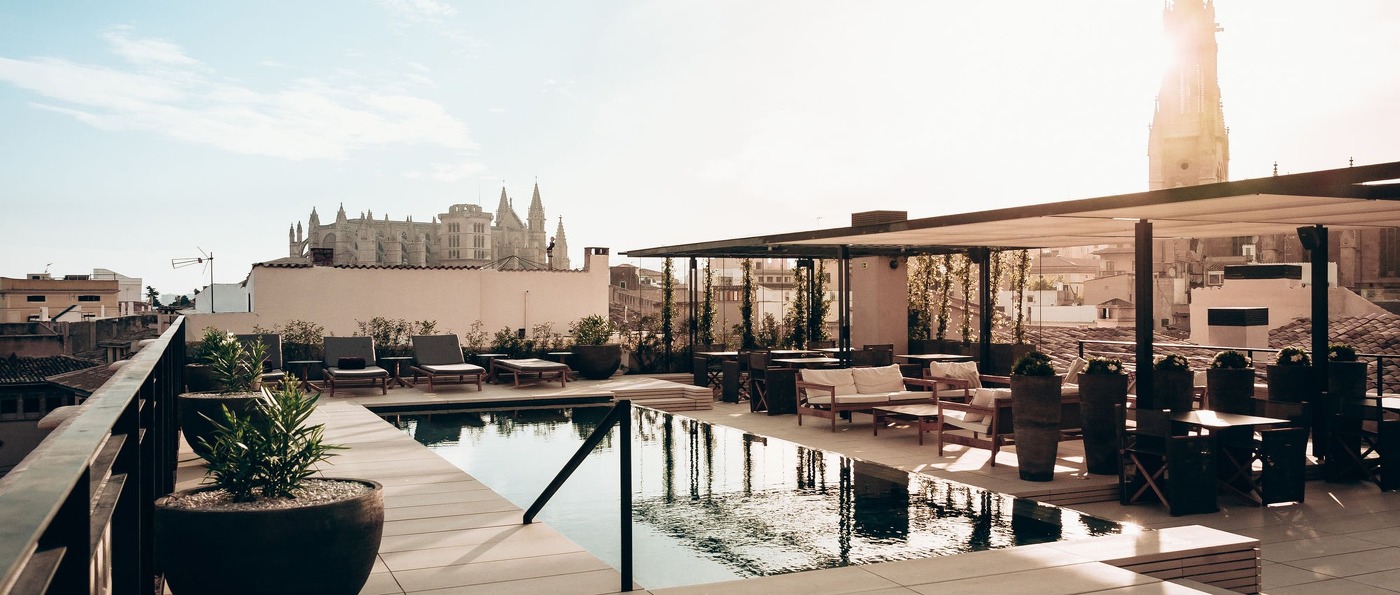- Un toit-terrasse unique, doté d'une piscine de 30 m², où vous pourrez admirer la vue magnifique sur la Plaza Sant Francesc