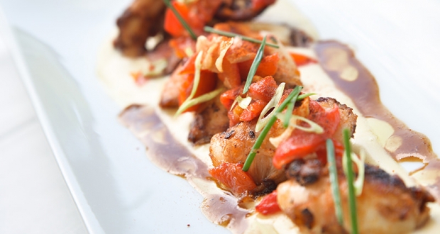 La cuisine du chef se compose d'ingrédients locaux et traditionnels de l'île et véhicule l'authenticité, l'innovation gastronomique et le respect des produits utilisés.