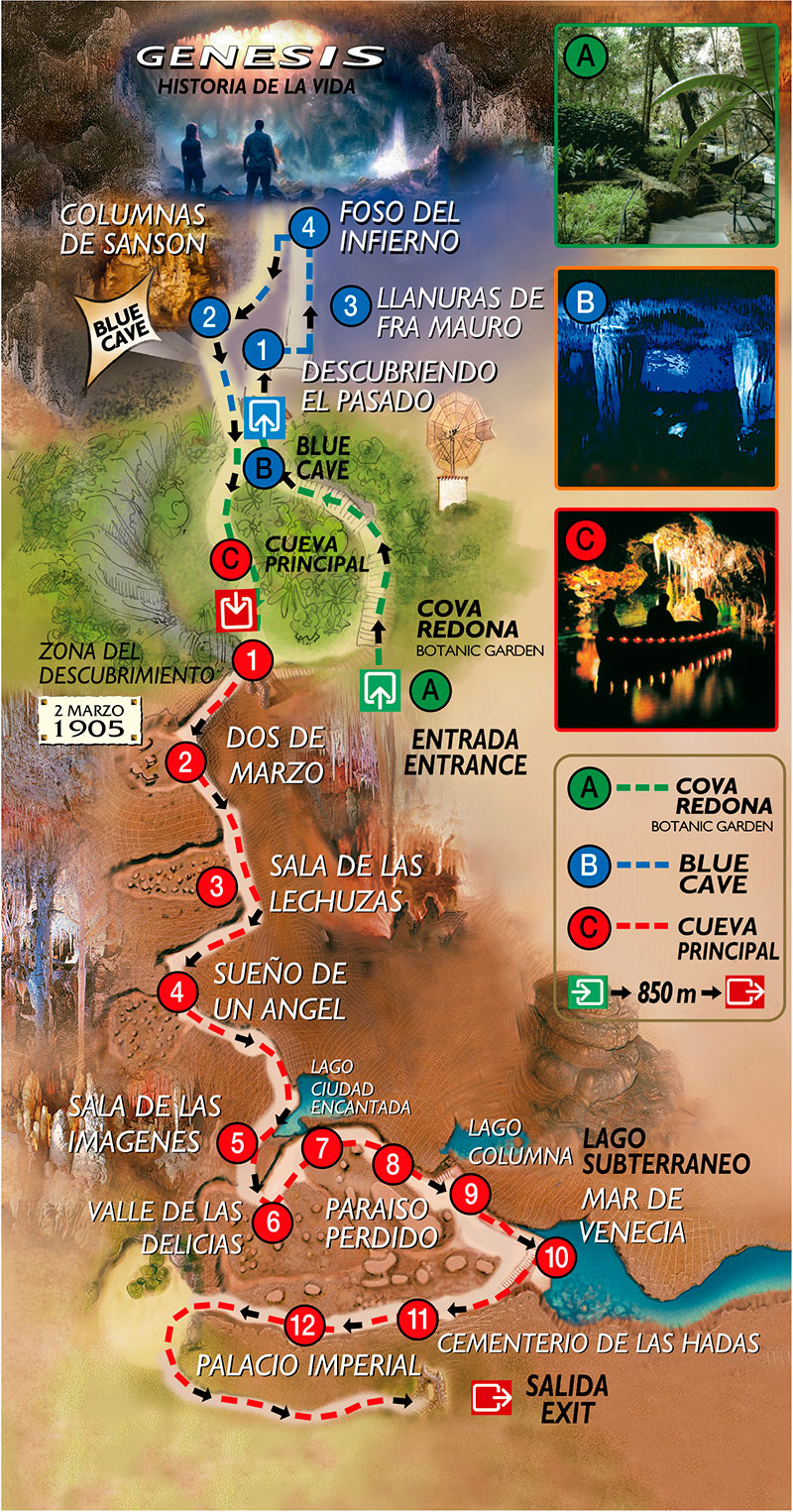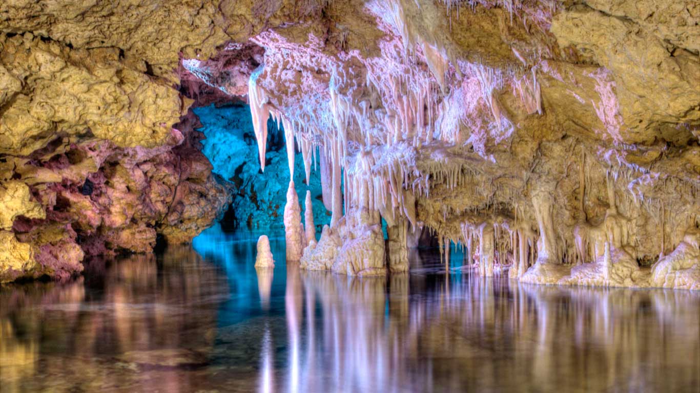La beauté incomparable de ces Grottes est mise en valeur par des éclairages artistiques, réalisés par D. Lorenzo Caldentey, fils de l’explorateur des Lieux.