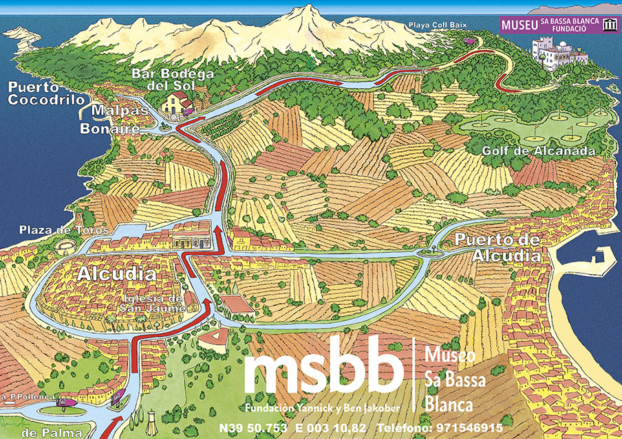 Une fois dans la ville d’Alcudia, vous trouverez des pancartes de couleur rose indiquant le musée, direction Es Mal Pas. Une fois à la hauteur du restaurant La Bodega del Sol, tournez à 90º à droite. Vous arrivez jusqu’au chemin del Coll Baix, un petit chemin de terre qui vous conduira jusqu’à la fondation.