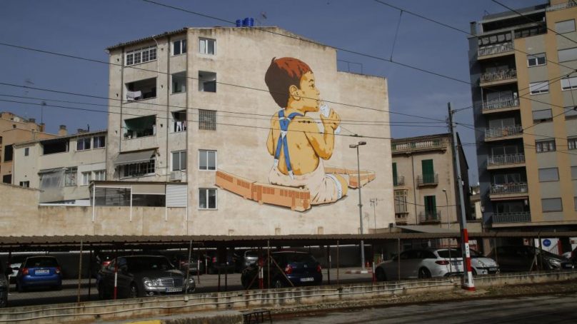 Ici à Majorque, nous avons la chance de pouvoir compter sur des artistes de rue très talentueux et très créatifs qui sont si bons qu’ils sont non seulement acceptés, mais accueillis à bras ouverts par les autorités et les institutions de l'île. Comme le plus grand mural de Palma : cette peinture de 20m de hauteur de Joan Aguiló a été subventionnée par « le train de Sóller » et la Fondation Can Prunera (voir image ci-dessus avec l'enfant aux bretelles bleues).